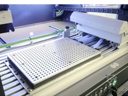 All linear axes mounted in the machine are from the isel range; they run with linear ball bearings on ground precision steel shafts. Backlash-free ball screw drives with various spindle pitches are used as drives. The machine table made of face-milled T-slot profiles offers a wide range of clamping options for individual workpiece fixtures and clamping devices.
